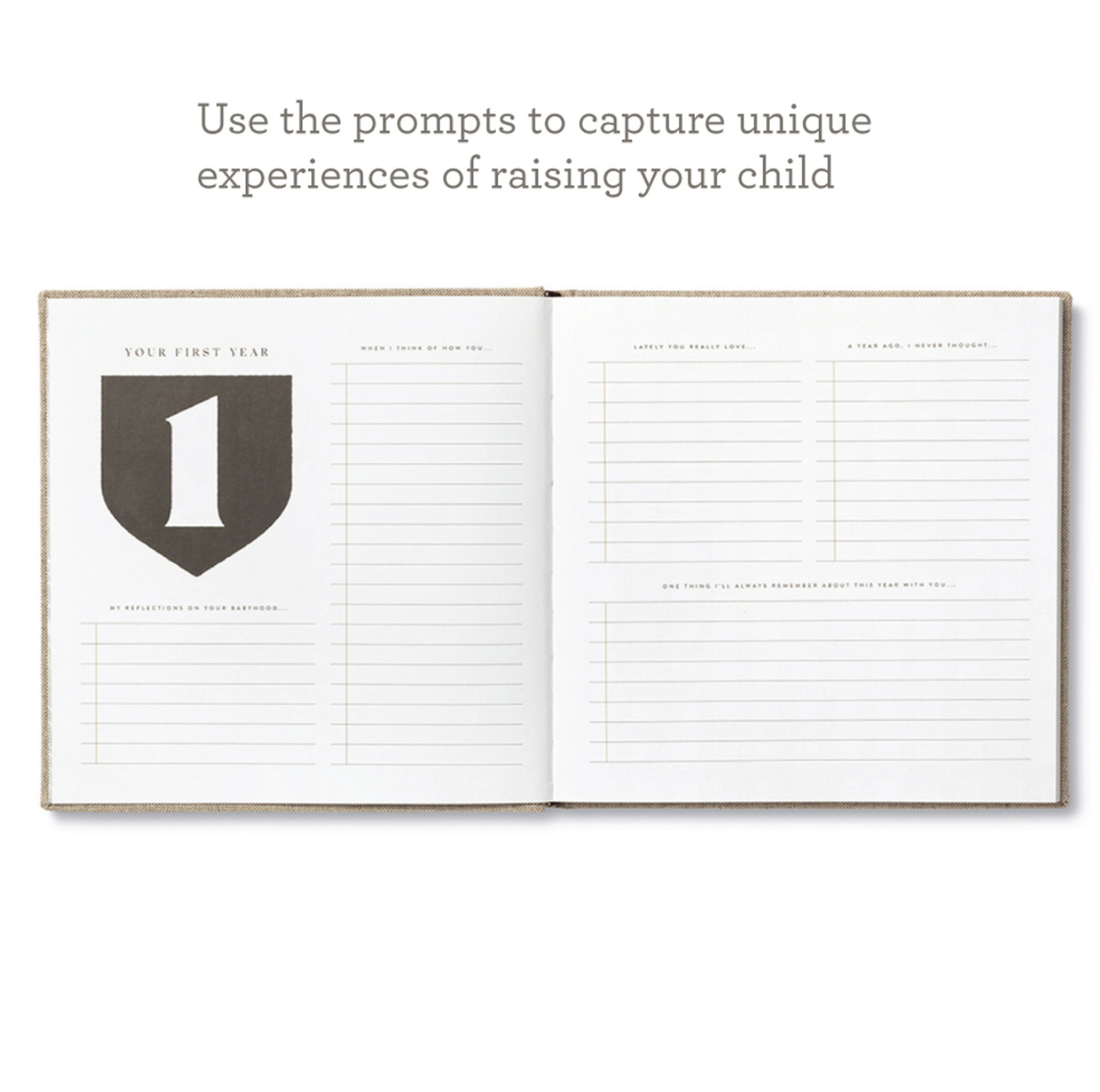 - Offers 18 years’ worth of age-appropriate prompts to record the moments and joys of childhood