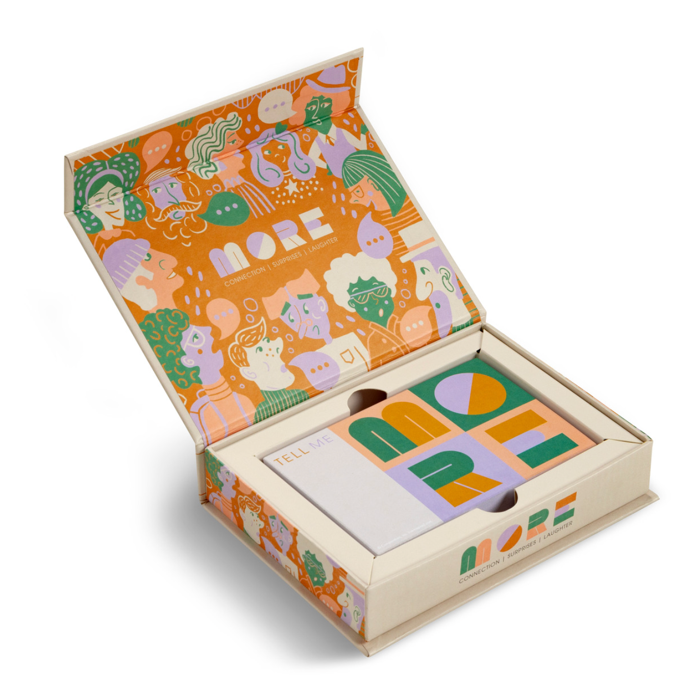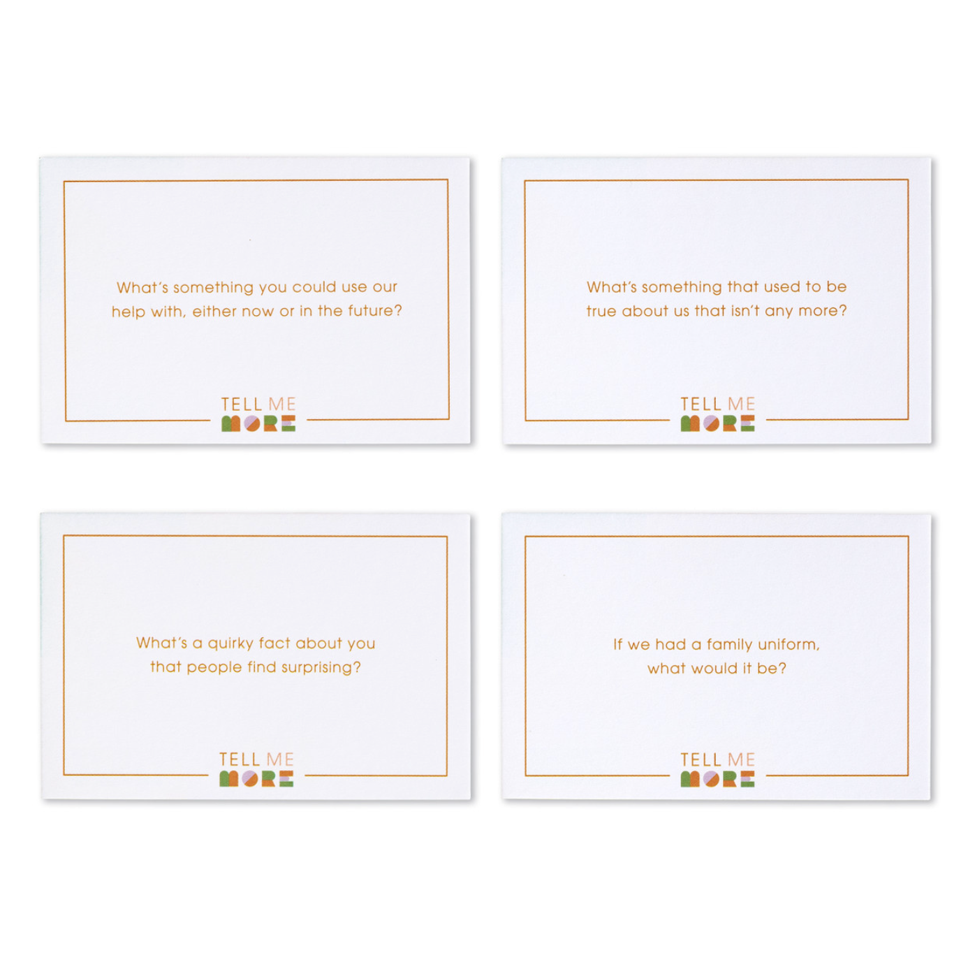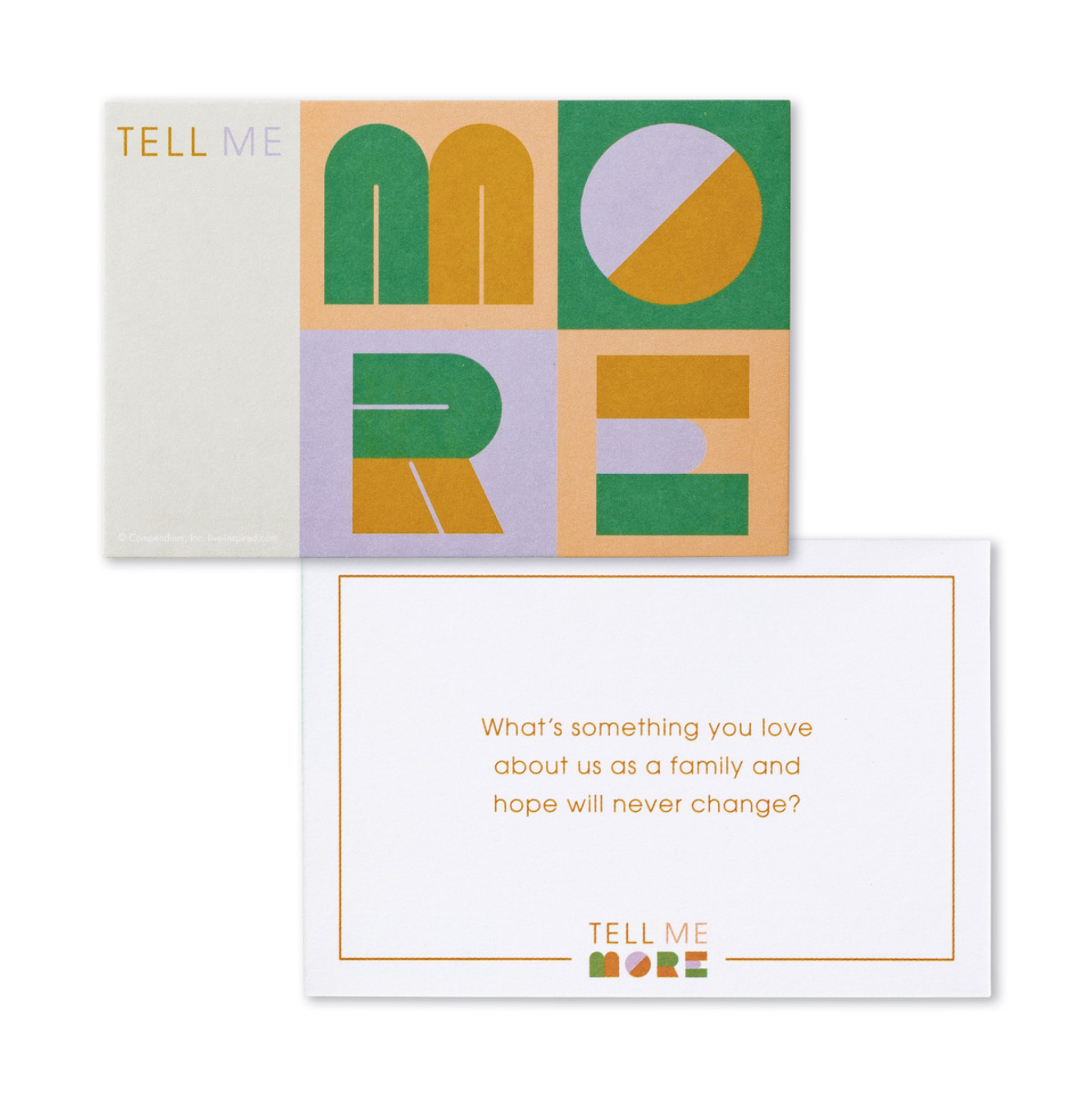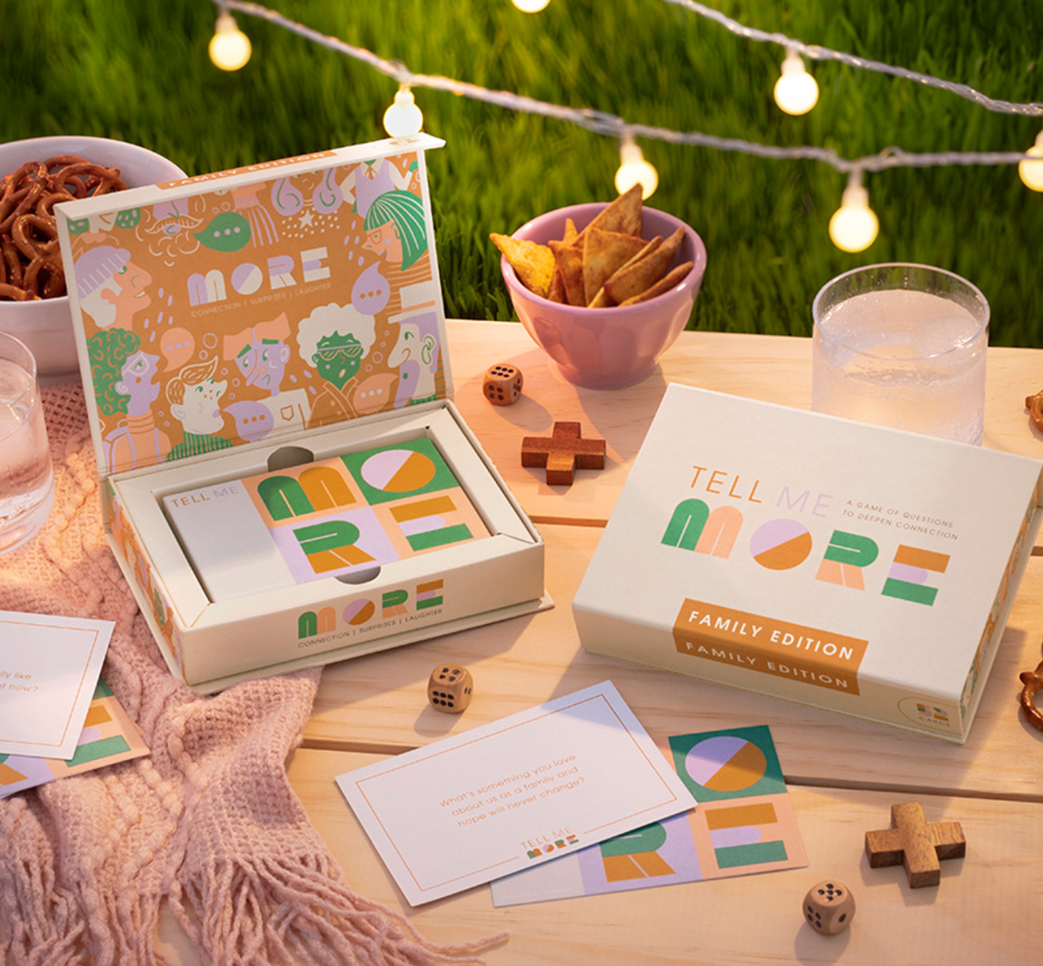 Inside this box are 52 conversation starters to help you foster communication and deepen your connection with your family. Ask the thoughtful questions one-on-one with a parent, a grandparent, a child, a sibling, a cousin. Or play as a family game (instructions included!) during dinners, holiday gatherings, cookouts, road trips, or anytime. Approachable for ages 11 and up, each creative prompt is a chance to build relationships and get to know each other more, because that means everything!