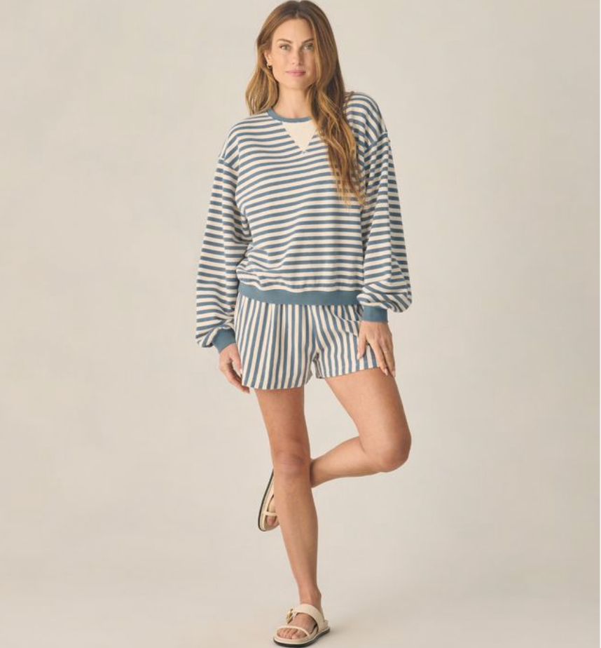 Women's Oversized Crew + Short Set, Marine Stripe