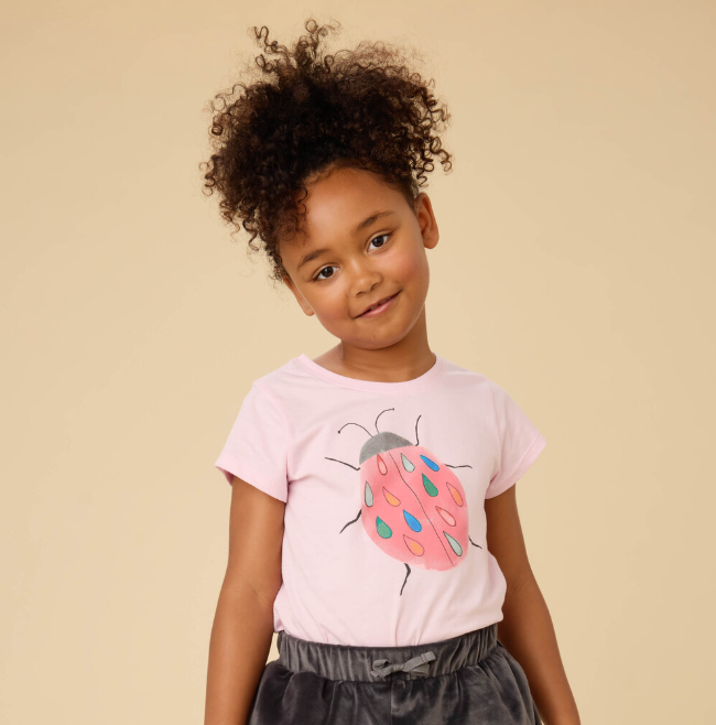 A cheerful ladybug dotted with colorful raindrops brings a playful pop to this graphic tee. Designed for easy wear and long-lasting comfort, it's made from soft 100% cotton jersey with a classic crew neckline and a standard fit that works for busy days. Thoughtfully finished with interior neck tape for added durability, it's built to be worn often, washed well, and passed along when the time comes.