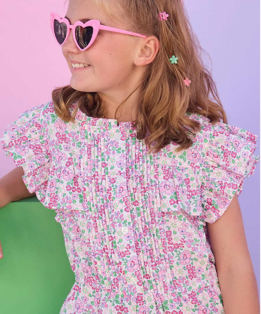 Your little fashionista will look like she just stepped off Rodeo Drive in this pink and green floral dress! With its pintucks, ruffles, & tiers, this on trend dress will take your mini everywhere. From Easter to summer soirées, this stunning tween-approved style is one she's sure to wear all season long. Dress it up with some espadrilles or dress it down with our jean jacket and some sparkly sneakers!