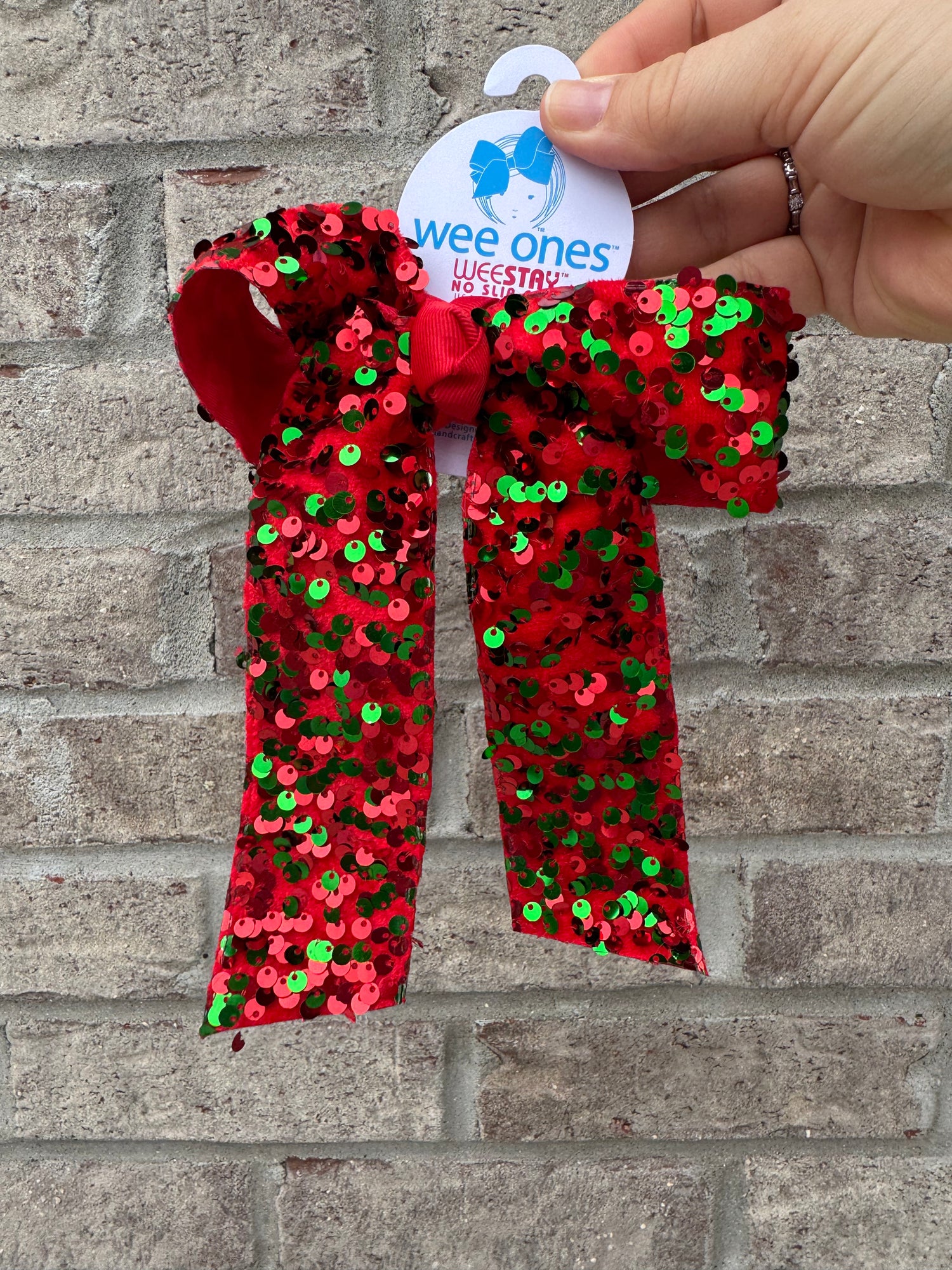 King Sequin Velvet Bow w/ Tails, Red/Green