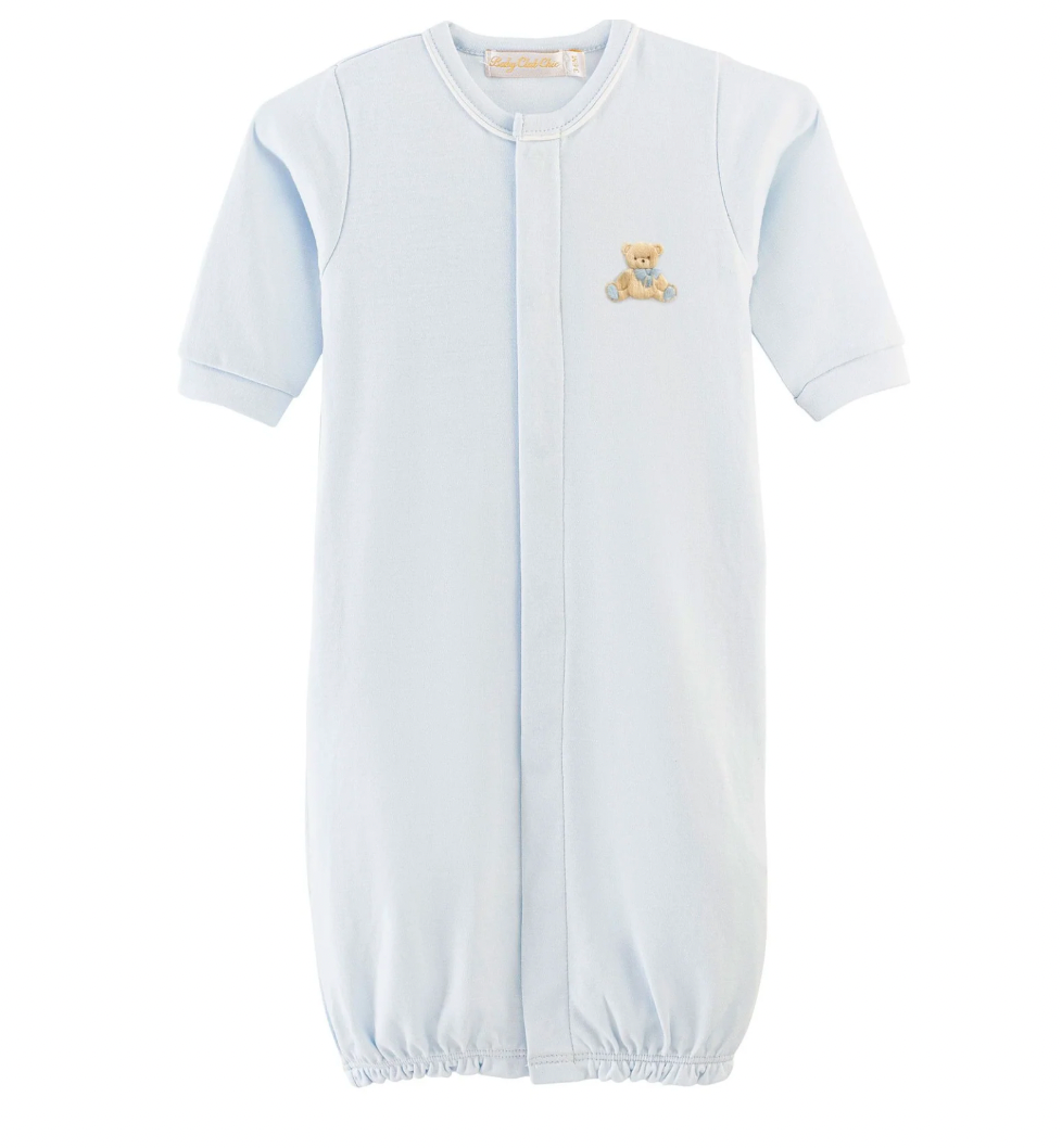 Beautiful and delicate hand-painted watercolor design, our sweet ruffled gown is made with 100% Peruvian Pima Cotton interlock. She can be converted into a coverall for the carseat!