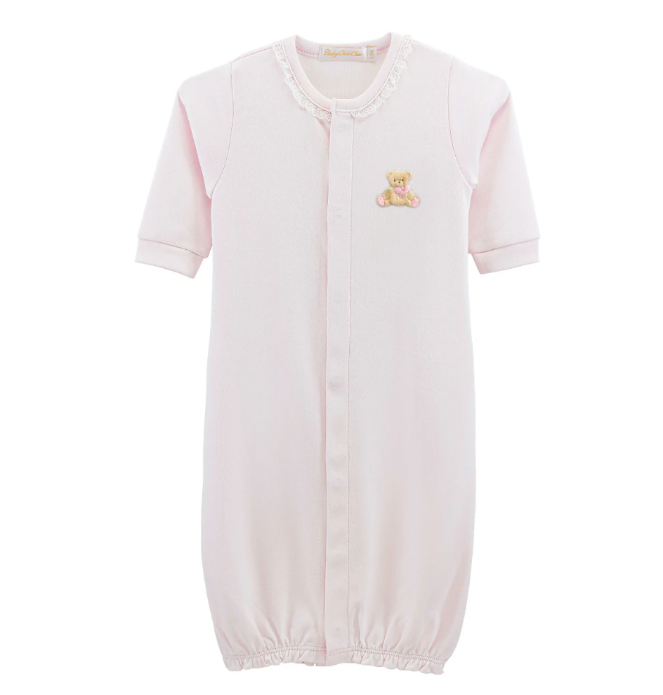 Beautiful and delicate hand-painted watercolor design, our sweet ruffled gown is made with 100% Peruvian Pima Cotton interlock. She can be converted into a coverall for the carseat!