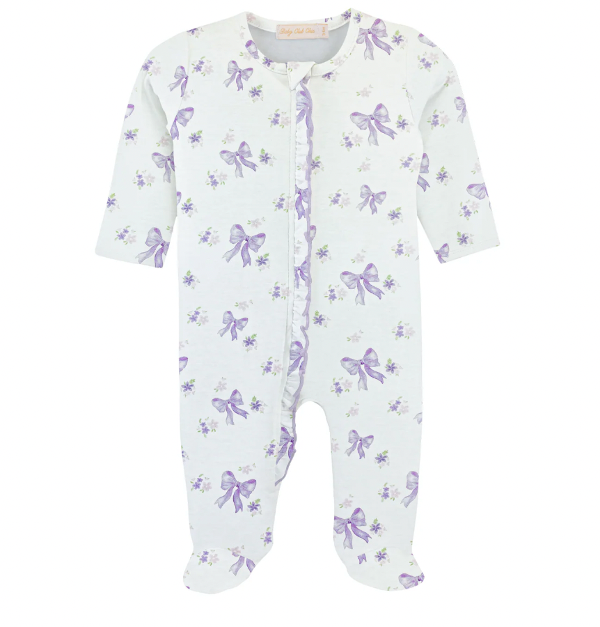 Zippered Ruffle Footie, Lavender Bows