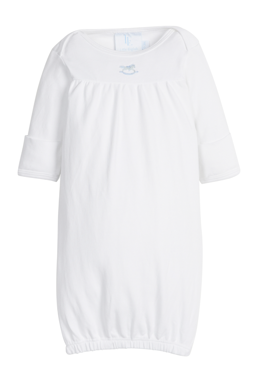 Dress your littlest one in our traditional newborn gowns! Made from the softest white pima cotton, this classic baby gown features darling rocking horse pinpoint embroidery and makes for all the best baby snuggles!
