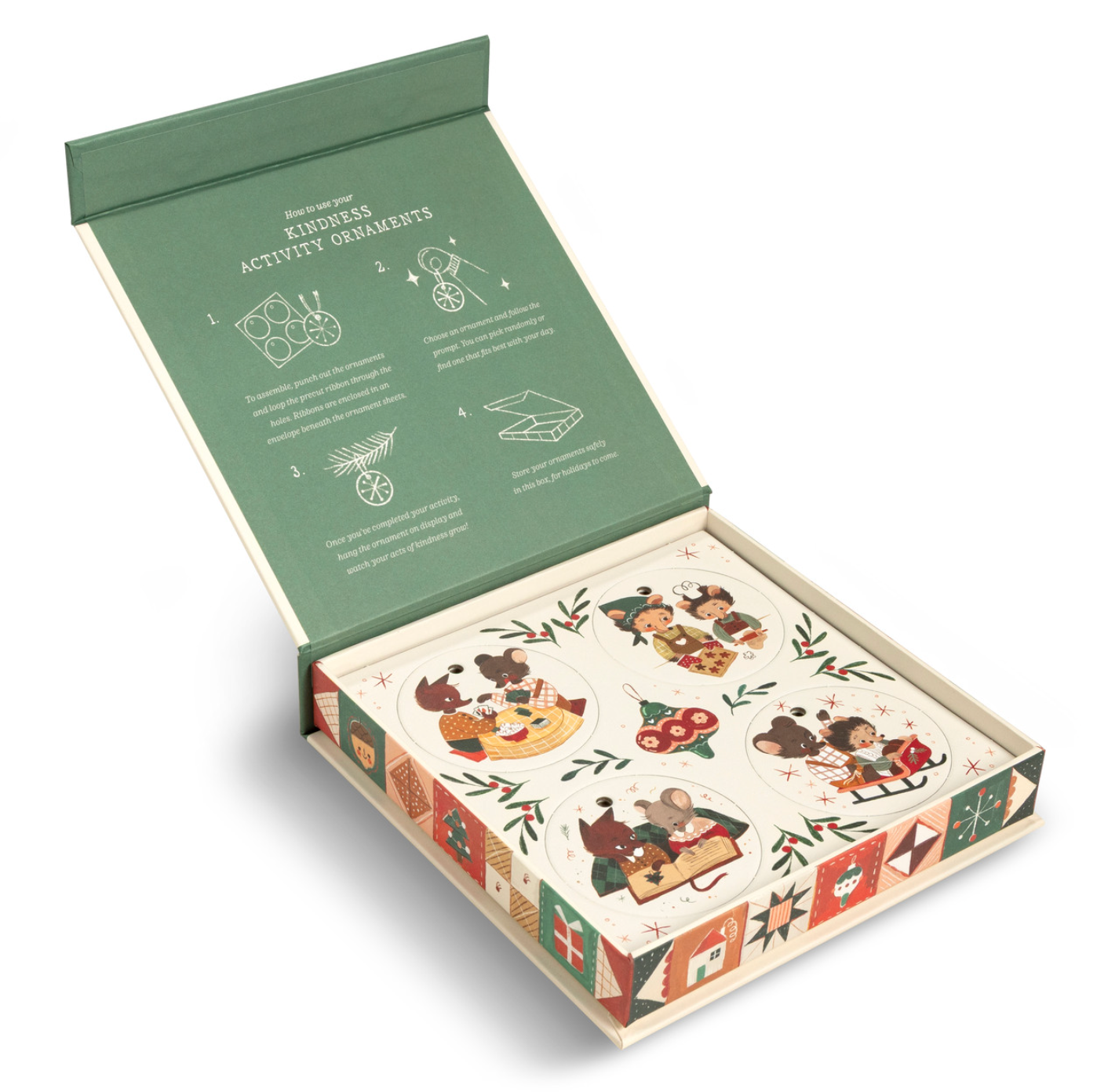 Inside this festive set, you’ll find 24 punch-out ornaments, each with a simple, thoughtful kindness activity printed on the back. Whether your family chooses one randomly each day or selects the prompt that best fits your mood, every activity is a chance to spark joy, spread love, and build a new holiday tradition. After completing an act of kindness, hang the ornament on the tree, and watch your kindness grow—day by day, year after year.