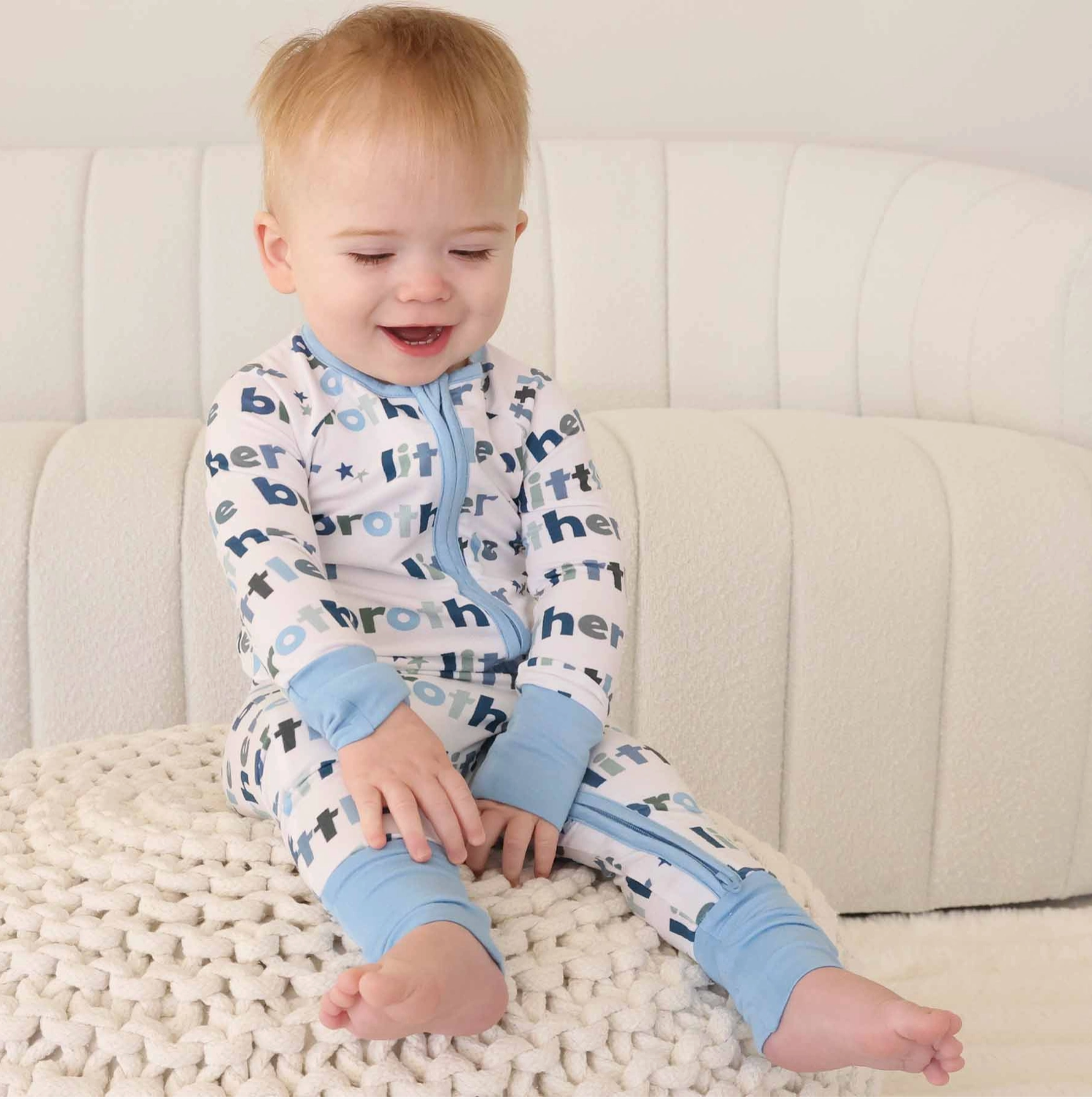 Made from dreamy bamboo viscose fabric, it keeps your baby at the perfect temperature all night long, making it ideal for all seasons. The convertible flip mitt design and full-length zipper make dressing and diaper changes easier than ever. Whether for sibling matching or solo snoozing, this romper is a must-have for your little brother’s wardrobe!