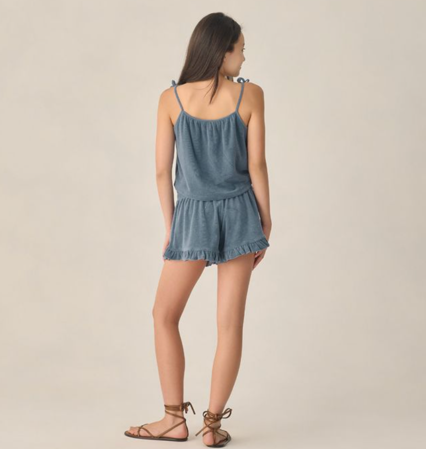 The Faye Set is as cute as it is comfortable. Featuring a gathered neckline with functional bow straps and matching shorts with a smocked waistband and wide-leg fit for a relaxed and breezy look.