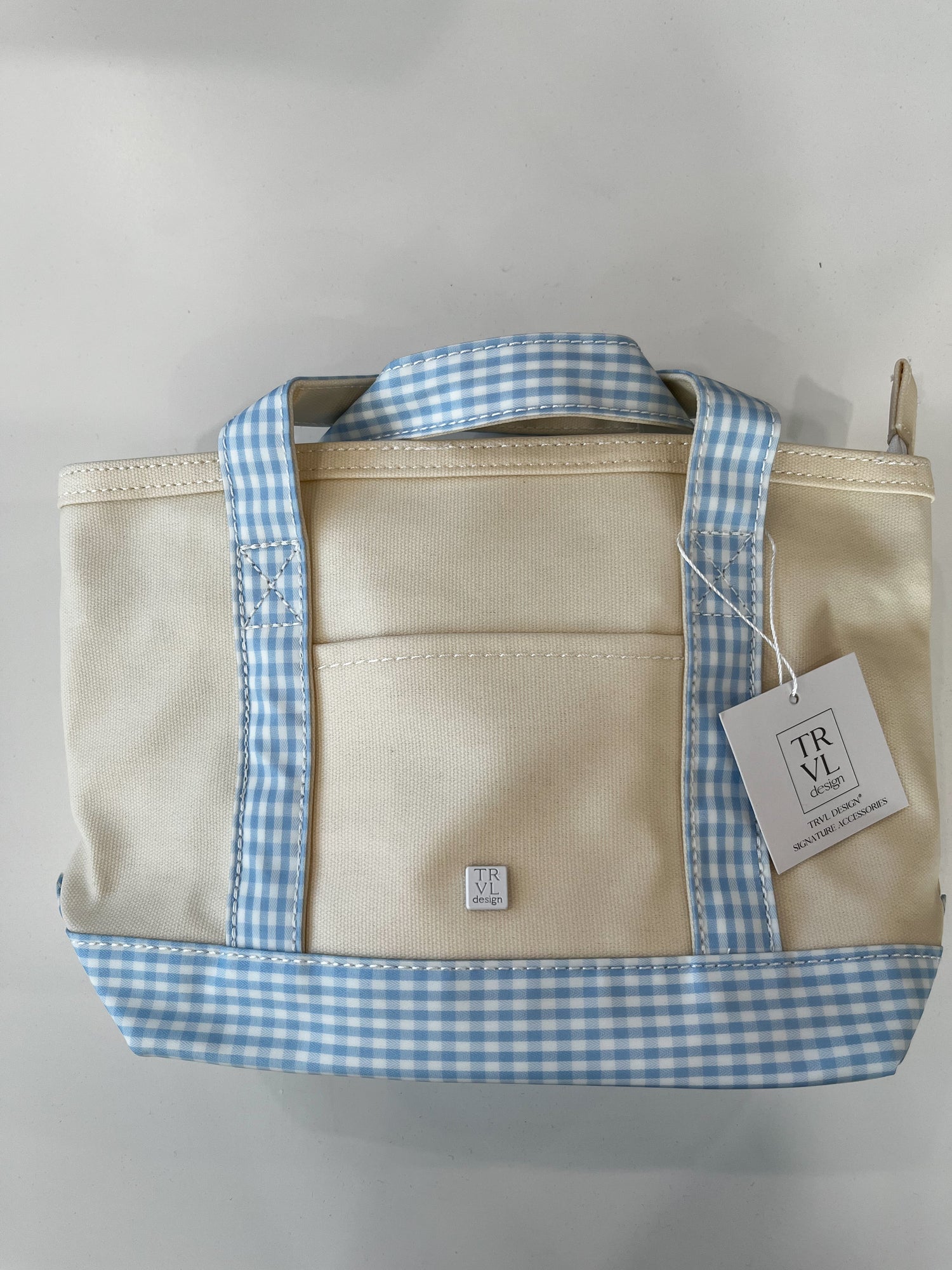Coated Canvas Mini Tote, Natural + Mist Gingham