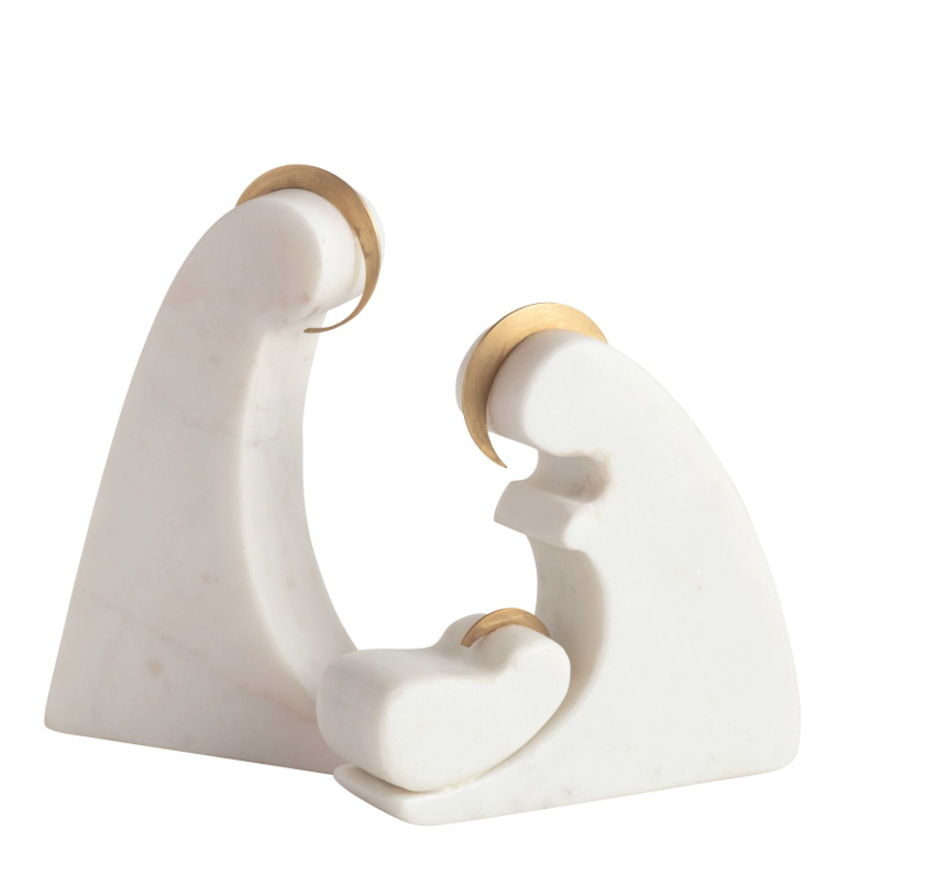 Marble Nativity display scene with electroplate gold detail.